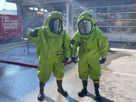 Besonders spannend wurde es bei der Übung im Chemikalienschutzanzug (CSA) unter realistischen Bedingungen: