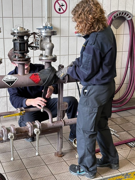 Aufgabe war es, an einem Übungsflansch eine Dichtung zu wechseln – eine Arbeit, die im CSA schnell zur Herausforderung wird und volle Konzentration sowie eingespielte Zusammenarbeit erfordert.